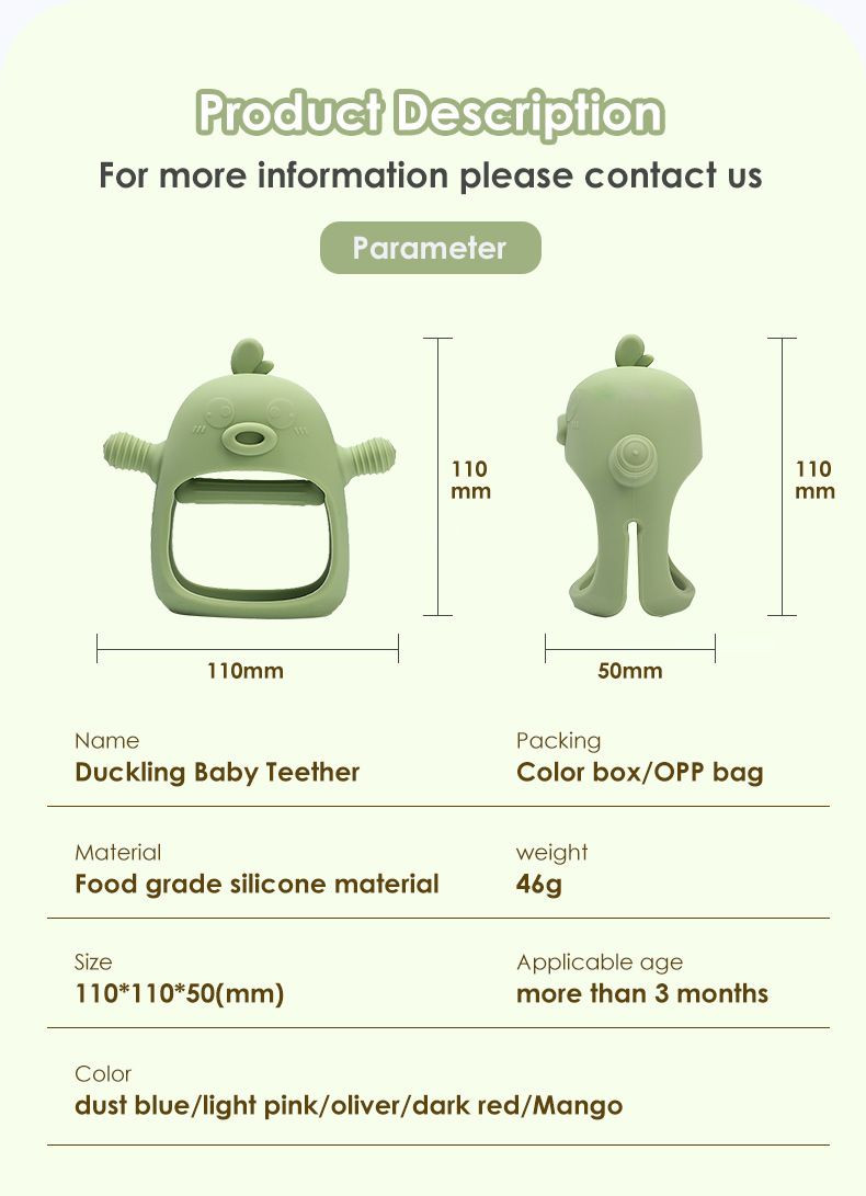 Made from 100% premium food-grade silicone, this teether offers the perfect balance of softness and durability. As a trusted manufacturer, we specialize in fully customizable solutions — from design and color to logo and packaging. Whether youre a brand owner or a distributor, our products deliver quality you can count on. Wholesale and custom orders are welcome.