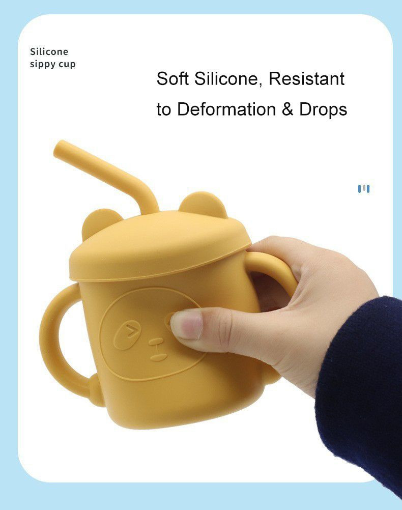 Food Grade Silicone Baby Straw Cup – Heat Resistant Anti-Drop BPA Free – Cartoon Toddler Sippy Cup